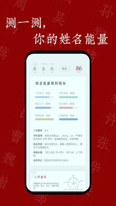 3.增值服务多:除了基本的起名功能外,提供的增值服务如商标注册、法御咨询等,为用户提供更多商业保障。